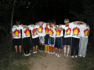 Following the second day of Color Week, consisting of athletic events, and the remaining Swim Meets and Track Meets, everybody gathers by the lake in the evening for the Rope Burn: an event that its participants, the Super Senior Boys, have eagerly awaited through all their years at camp. (In an equally special Iroquois Springs Tradition, the Senior Girls participate in a Rope Burn during Tribals). The Rope Burn is intense and emotional and to its participants, never forgotten. Three thoroughly soaked ropes (approximately two feet, five feet and ten feet high) are fastened to two posts. The objective is to be the first team to build a fire that can burn through all three ropes. Three team members build a fire with wood carried from the surrounding woods by their team mates. Given that three ropes must be burned through sequentially, a lot of strategy is necessary.